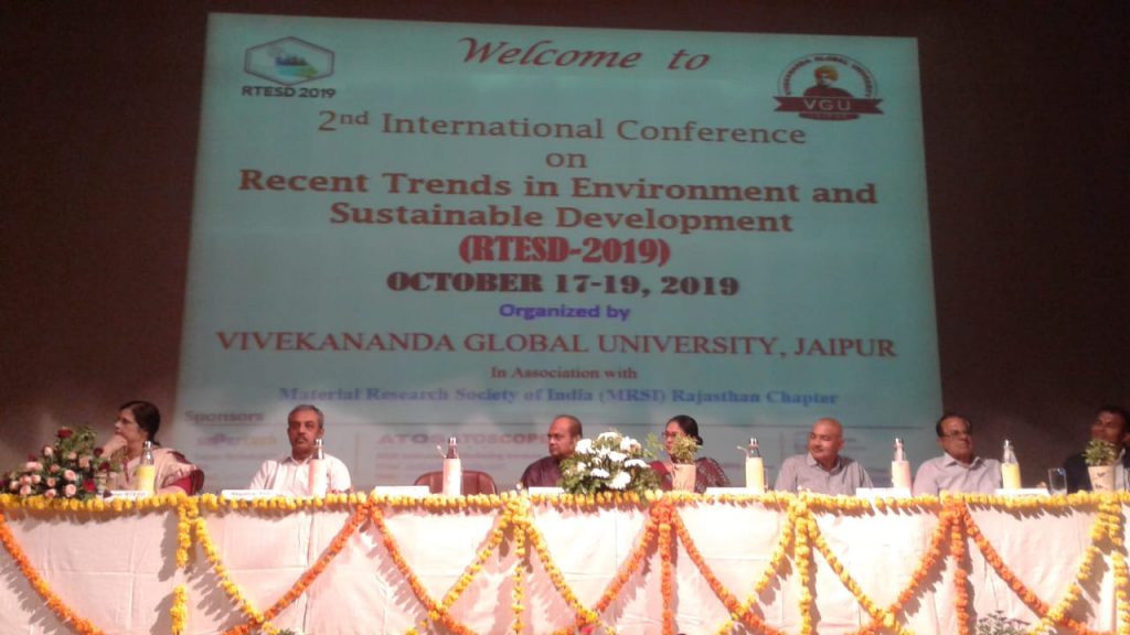 जयपुर 17 अक्टूबर 2019।(निक शिक्षा)यूनिवर्सिटी के लाइफ साइंसेज,रसायन विज्ञान एवं फिजिक्स विभाग द्वारा आयोजित तीनदिवसीय अंतर्राष्ट्रीय संगोष्टि का उदघाटन डॉ के आर बगड़िया, संस्थापक विवेकानन्द विश्वविद्यालय एवं मुग्धा सिन्हा आईएएस अफसर, सेक्रेटरी डीएसटी राजस्थान सरकार ने दीप प्रज्वलित करके किया।इस अवसर पर संगोष्टि के आयोजक VGU एवं VIT के सीईओ श्री ओंकार बगड़िया ने जानकारी देते हुए बताया कि इसमें देश विदेश के 300 से अधिक वैज्ञानिक एवं शोध छात्र पर्यावरण विकास , ऊर्जा संरक्षण, प्रदूषण सुरक्षा तथा अन्य विषयों पर उपयोगी वार्तालाप की जाएगी।