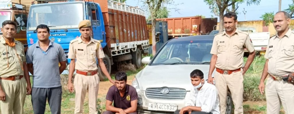 गिरफ्तार अभियुक्त अंकित थाना अमरसर जिला जयपुर,,व दूसरा अभियुक्त मुकेश कुमार थाना मनोहरपुर जिला जयपुर