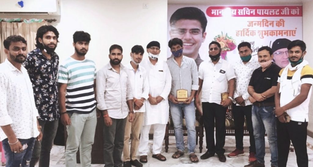 जयपु 7 सितंबर 2020।(निक चिकित्सा) राजस्थान में युवाओं के लिए प्रेरणा स्रोत व युवा तरुणाई के प्रतीक राजस्थान सरकार के पूर्व उपमुख्यमंत्री सचिन पायलट के जन्म दिवस के अवसर पर जयपुर के विभिन्न क्षेत्रों में रक्तदान शिविर आयोजित हुए जयपुर के वी के आई रोड नंबर 14 पर स्थिति होटल लिचाना हवेली में विद्याधर विधानसभा सभा में वार्ड नंबर 1 के युवा कांग्रेस कार्यकर्ताओं द्वारा सचिन पायलट के जन्मदिन पर विशाल रक्तदान शिविर का आयोजन कर जन्मदिन मनाया गया पायलट का जन्मदिन बड़ी सादगी व उत्साह के साथ मनाया गया रक्तदान शिविर में युवाओं ने बढ़ चढ़कर हिस्सा लिया जिसमे 55 यूनिट रक्त एकत्रित हुआ।